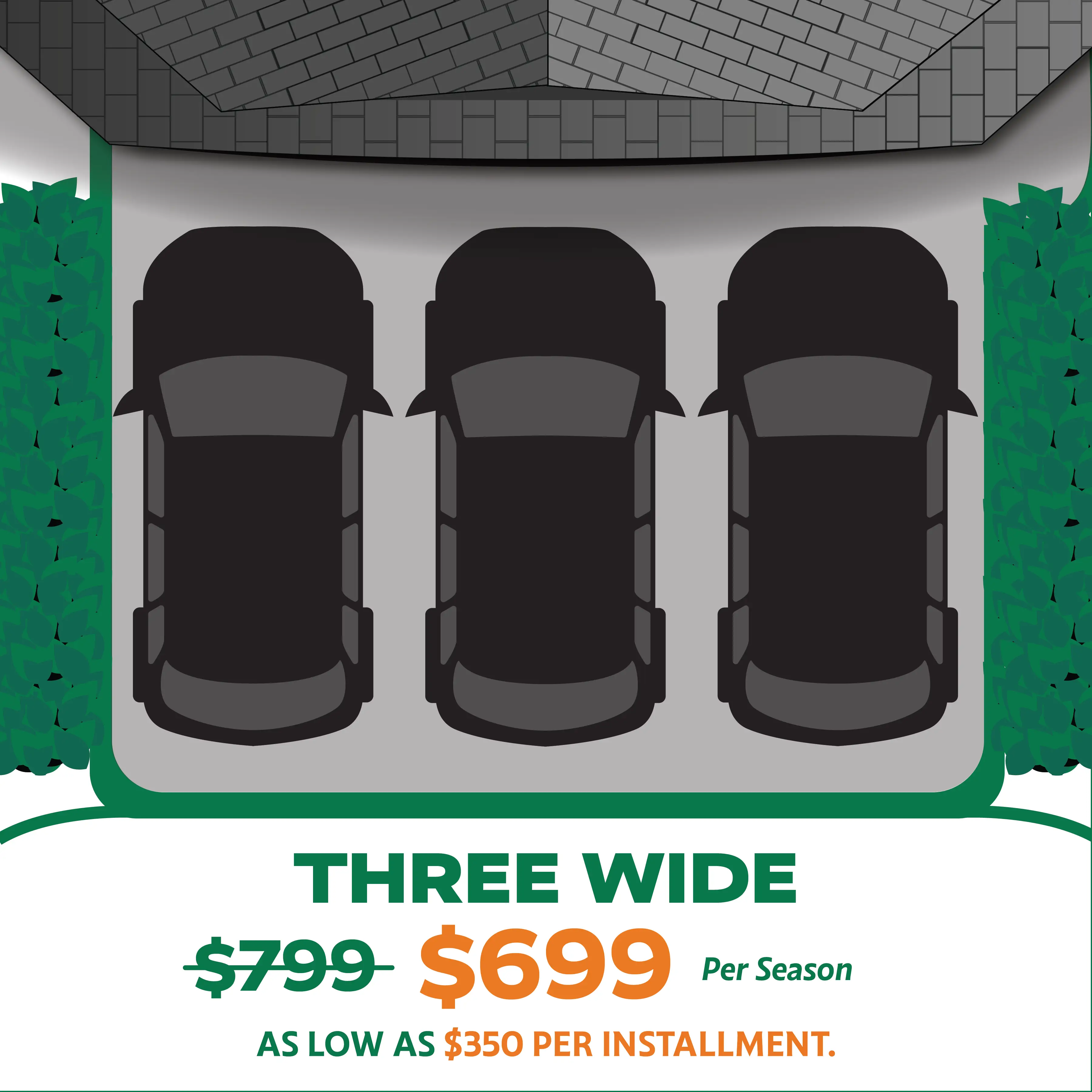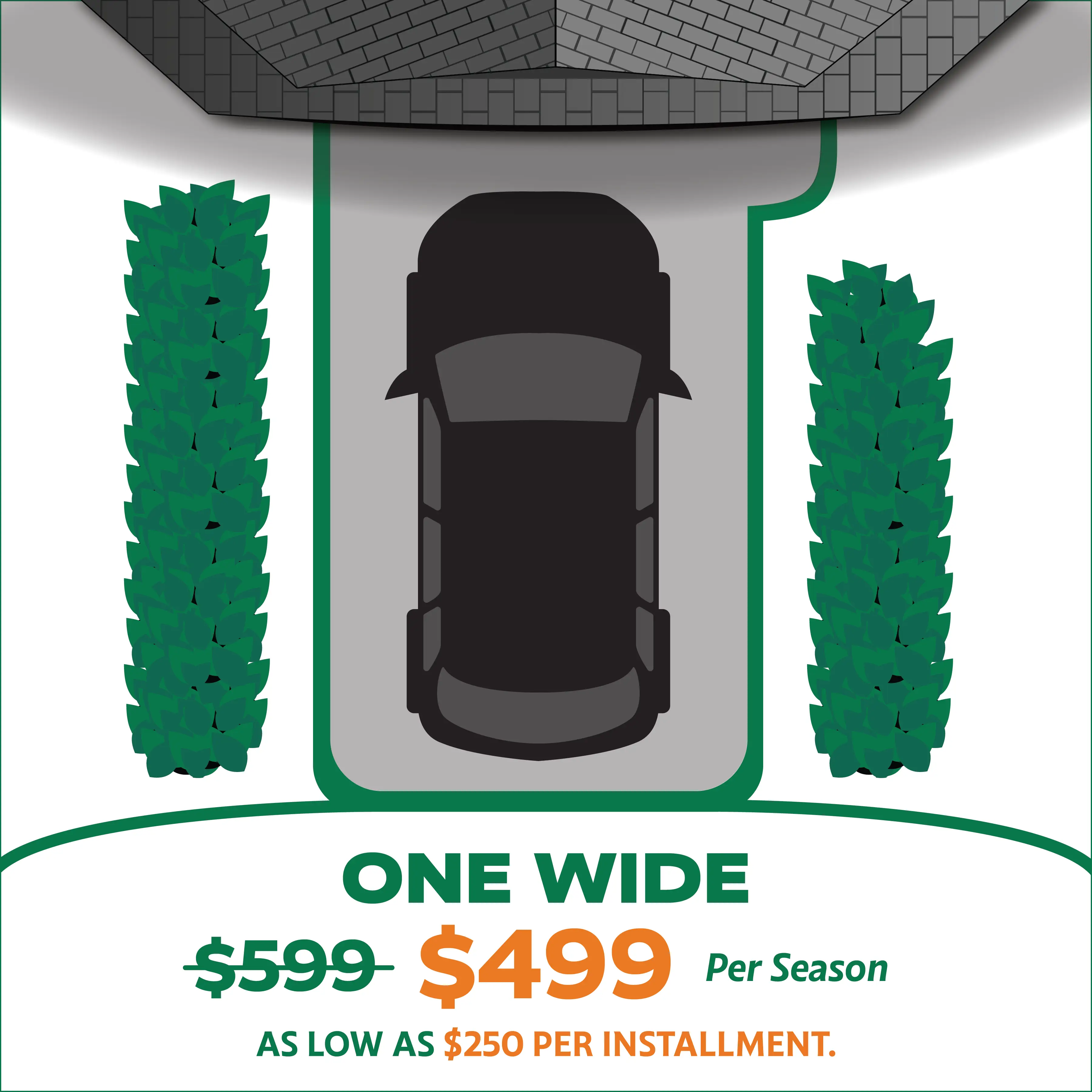 We price our services based on the width of your driveway. Instead of measuring the exact size of your driveway, we simply base if off standard sizes. If your driveway is one car wide it is a single, two cars wide it is a double, etc. Driveway length is not usually taken into consideration unless it is abnormally long. Pricing starts as low as $598 for the unlimited snow removals at 1” for the entire winter season.